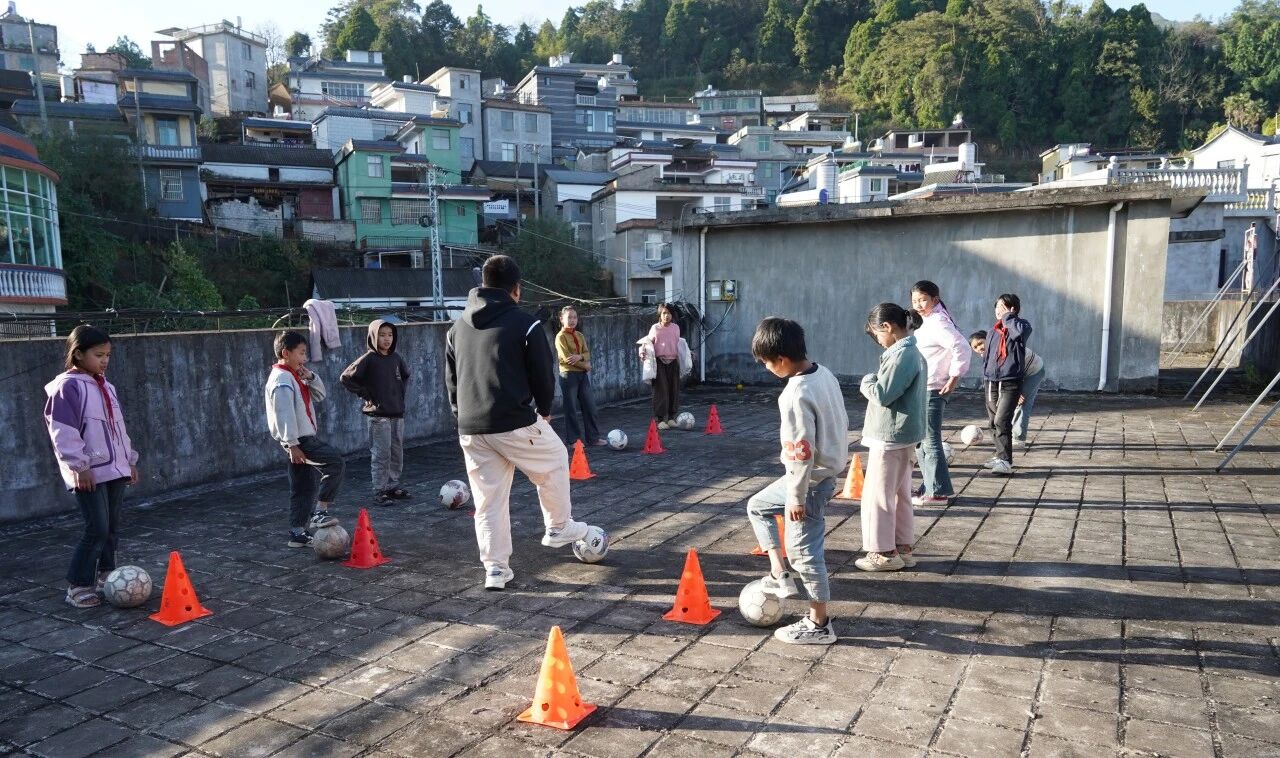 由于校园场地有限,另一名留任志愿者何加将课后足球兴趣班带到了教学楼的顶层。虽然只是一片不大的楼顶空间,却成为孩子们追逐梦想的安静角落。从基础的控球、运球开始,他们一步一个脚印地练习。成功从来不是一蹴而就,正是这一点一滴的努力,让梦想渐渐照进现实。