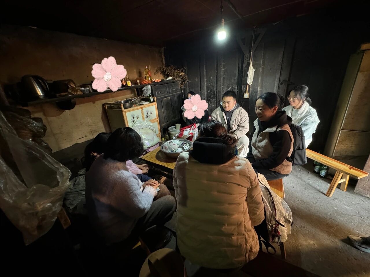 回访团队在志愿者的带领下去学生家家访