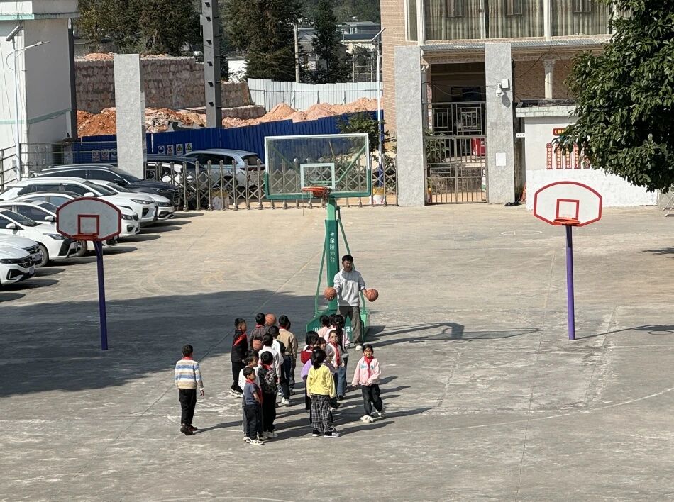 以坝子小学的志愿者杨光进老师为例,他既是数学老师,也兼任体育教师。一堂简单的篮球基础课,不仅缓解了孩子们课堂学习的疲惫,更在奔跑与协作中,悄然塑造着他们的毅力与团队精神,助力他们朝着更加全面、健康的方向成长。