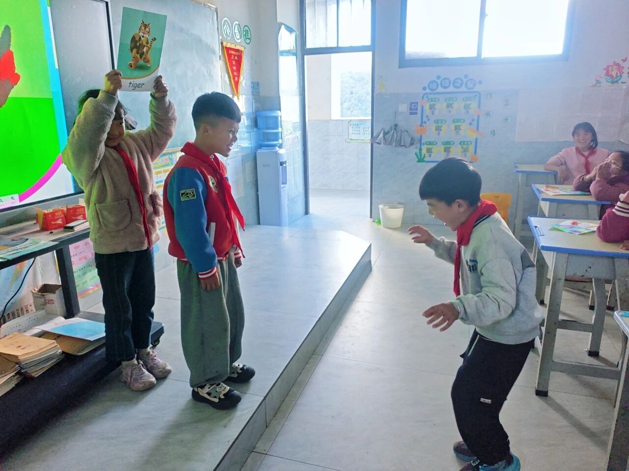 在期垤小学的英语课上,志愿者邓利芸老师发现学生们既好奇又胆怯。为了让英语真正“活”起来,她开始在课前八分钟带大家玩单词游戏:模仿动物猜词、限时指认颜色物品、用身体摆数字……渐渐地,举手的人多了,跟读的声音响了。游戏带来的不只是欢笑,更是融入心里的知识。