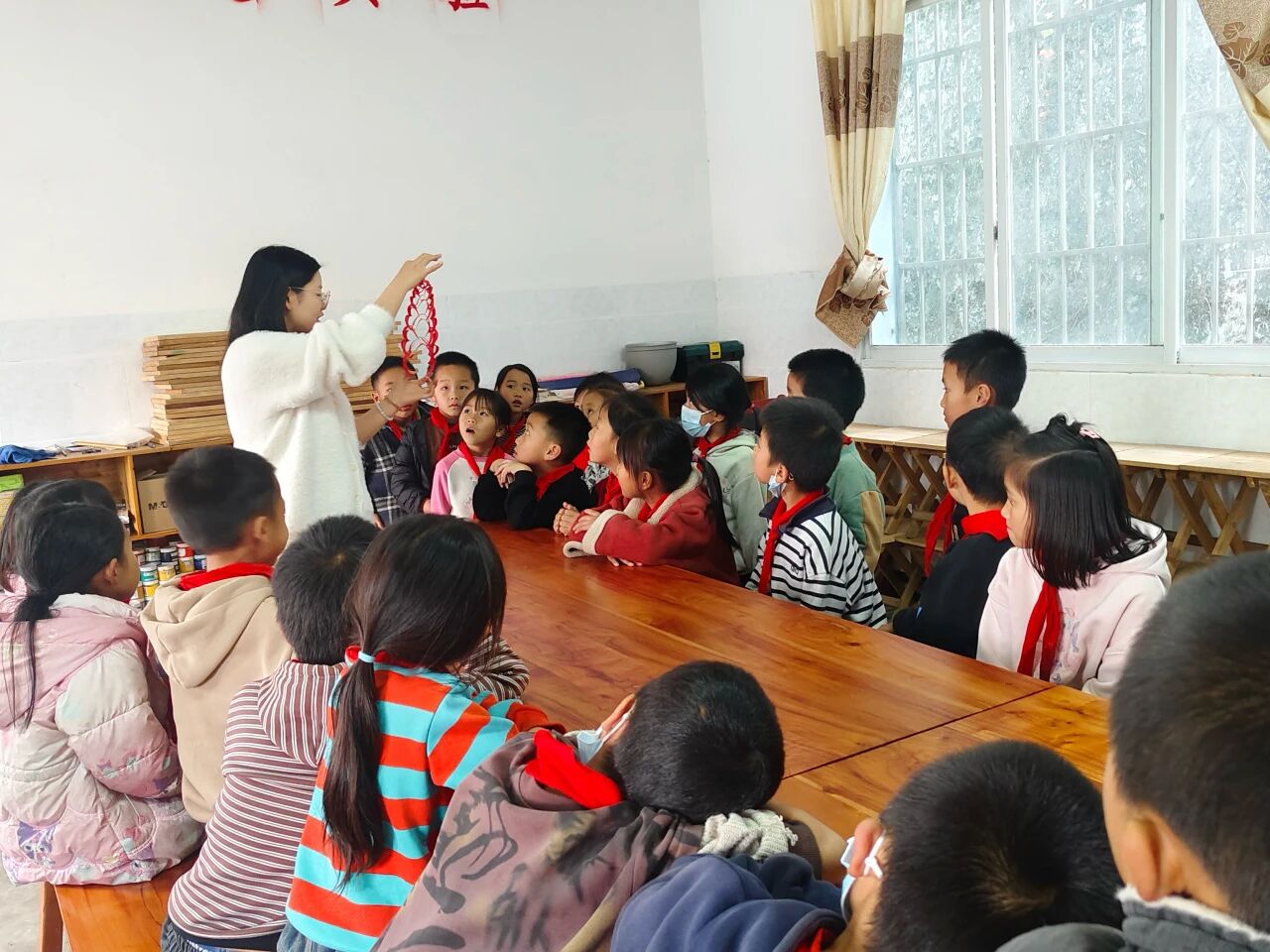 12月,麻栗坡县新寨小学的志愿者秦畅和李琴两位老师组织孩子们学习剪纸。当第一串拉花“哗”地展开时,几十双眼睛瞬间被点亮。惊叹声中,孩子们纷纷高举自己的作品,兴奋地喊道:“太神奇啦,真好玩!”原来,最简单的纸也能施展最动人的魔法。