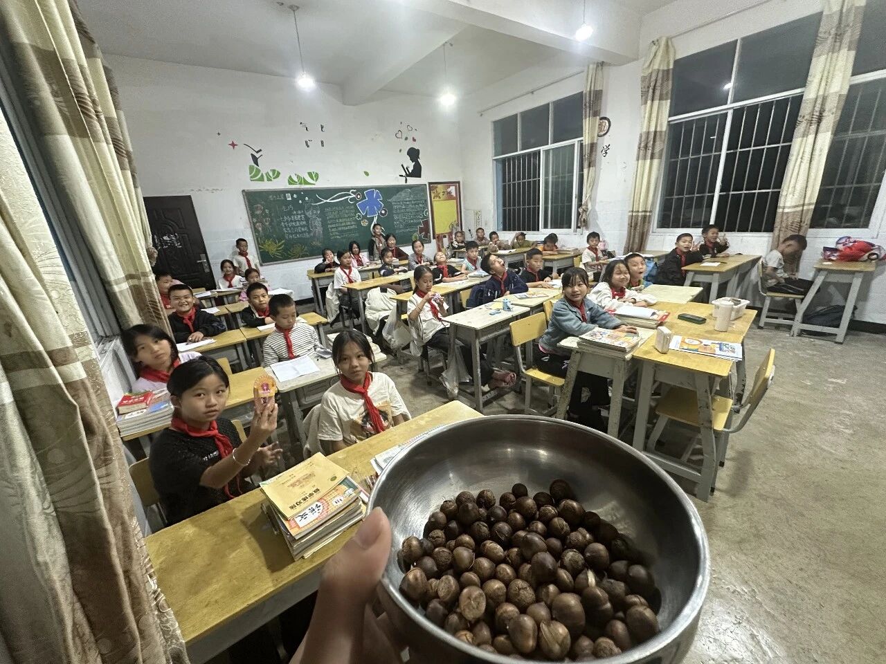 给予与接收,珍藏与分享,感恩与关怀……那些课本上的道理,就在这兜小板栗的传递中,完成了最生动的闭环。大山教会他们的,他们教会我的,此刻通过这小小的板栗,传递给了彼此。